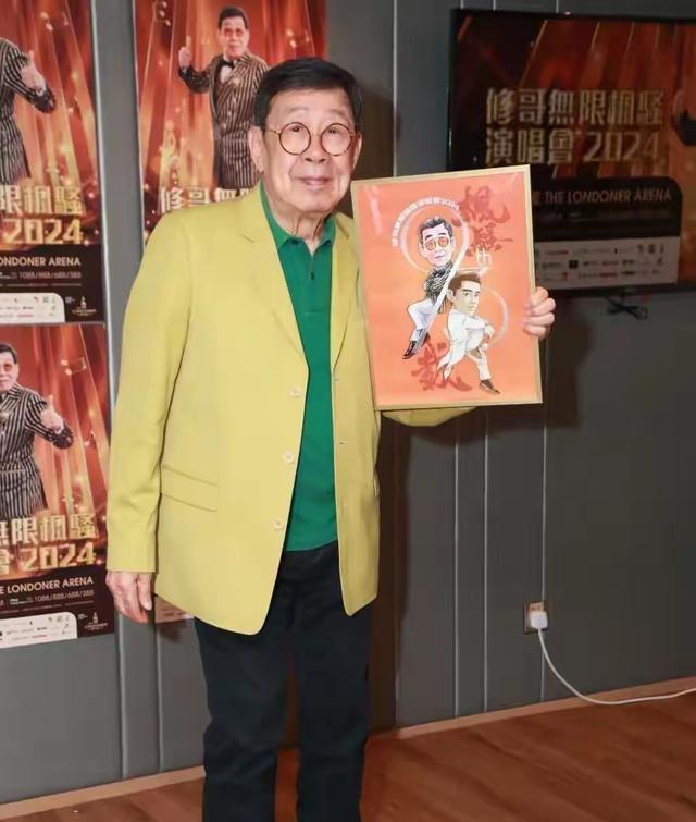 黄日华等人也是满脸笑意地簇拥在一旁。那一刻,你看到的不是明星,而是一群围绕在慈祥老父亲身边、抢着尽孝心的孩子。