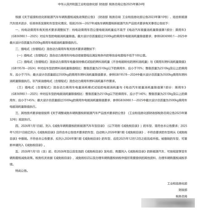 此前,工信部、财政部、税务总局联合发布《关于2026—2027年减免车辆购置税新能源汽车产品技术要求的公告》,明确了未来两年新能源汽车购置税减免政策的具体要求。